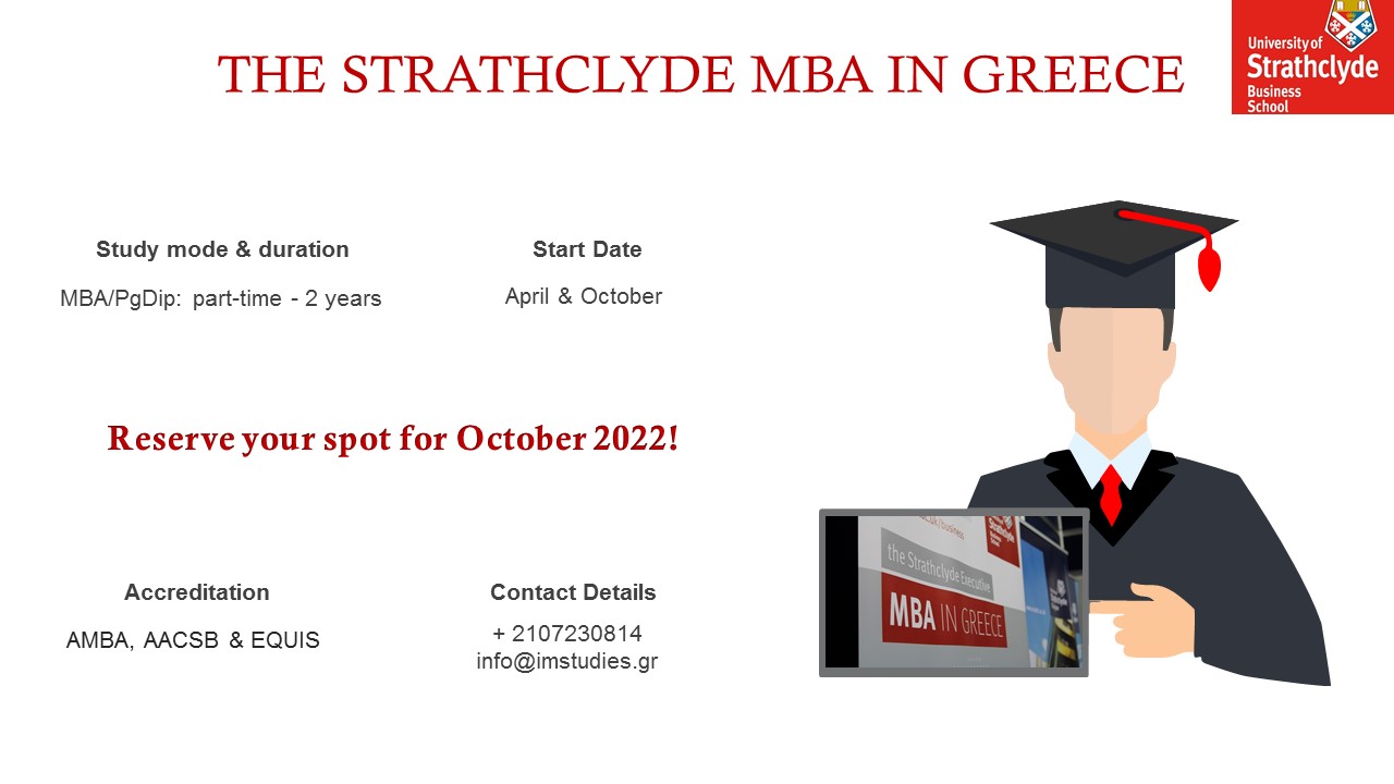 The Strathclyde MBA is being delivered for more than 25 years in Athens, Greece by International Management Studies. Located at Chalandri, Athens, International Management Studies (IMS) is the University’s Greek branch. International Management Studies was set up in Greece by a team of British management education specialists to provide high quality management development programs to experienced and talented professionals.