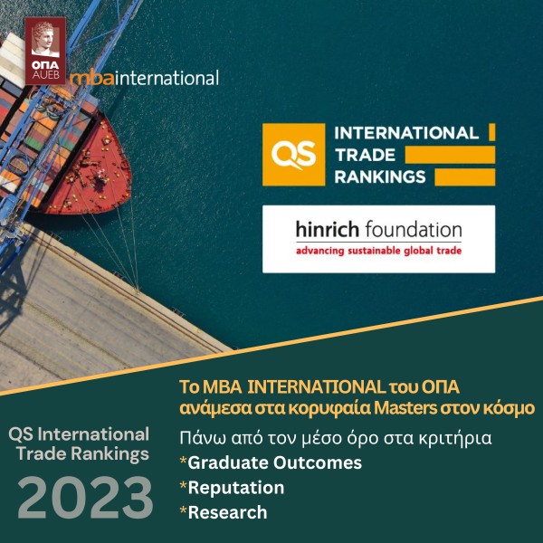 QS: Το MBA Ιnternational του ΟΠΑ μεταξύ των κορυφαίων Μεταπτυχιακών στο Διεθνές Εμπόριο